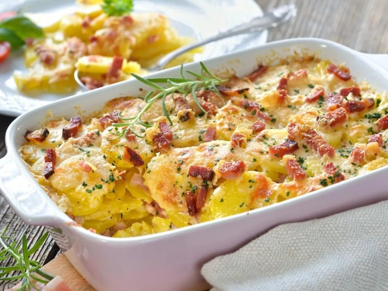 Papa gratín con jamón y tocino